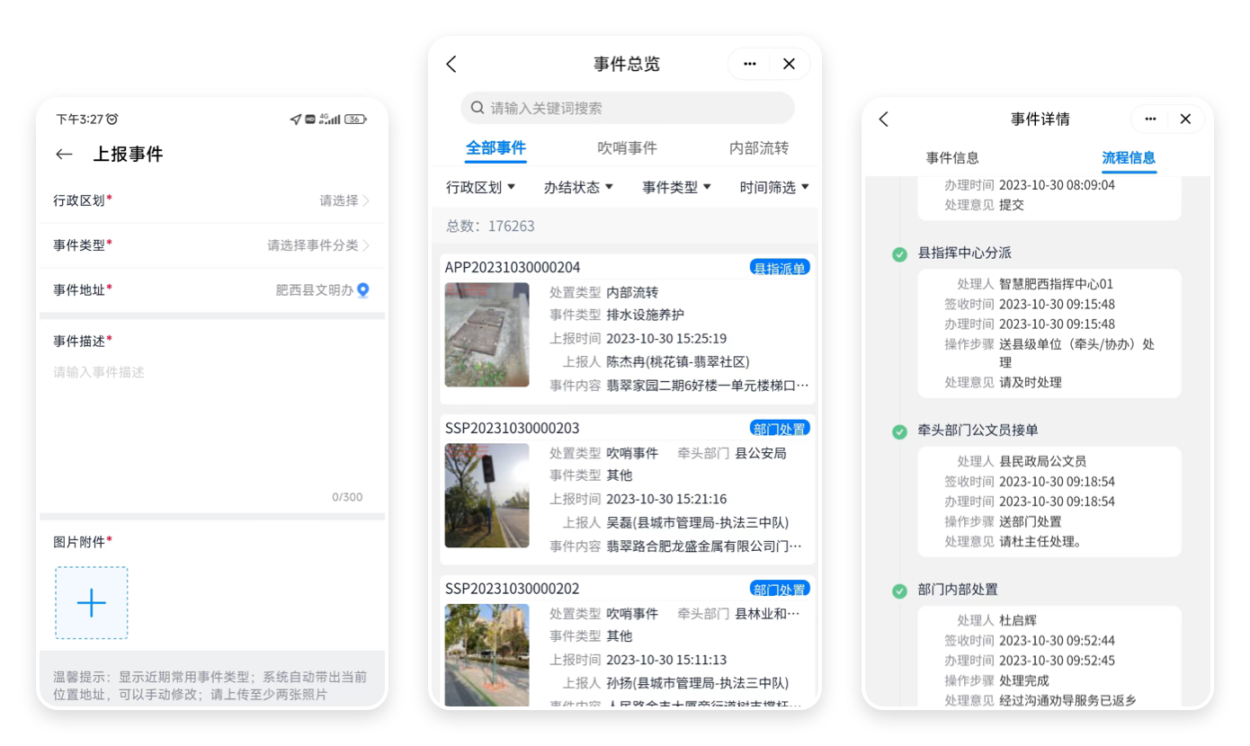 中期:对事件进展进行全局性跟踪,建立节点可视化展示平台。在每个事件的详情中可查看每个节点办理进度和详情,对事件流转的各个阶段实现可视化。建立审核机制,由内部后台、到县指挥中心、再到多级部门,层层过关的审核机制确保问题反馈的畅通和事件处理的妥当。建立超期预警机制。对每个事件设置办结时间,系统自动短信通知即将逾期的责任人,督促办理或者申请延期,确保事件落实办结。针对平台上报的难以解决的问题,县委不定期召开专题调度会,及时帮助解决事件归属、协调、责任等方面存在的问题,为事件落实办结保驾护航。